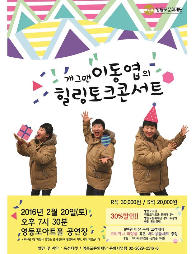 [영등포신문=김경진 기자] 영등포문화재단(이사장 조길형)은 2월 20일 신년을 맞아 구민을 위한 활기찬 문화공연을 선사하고자 영등포아트홀 공연장에서 ‘이동엽의 힐링토크콘서트’를 개최한다.