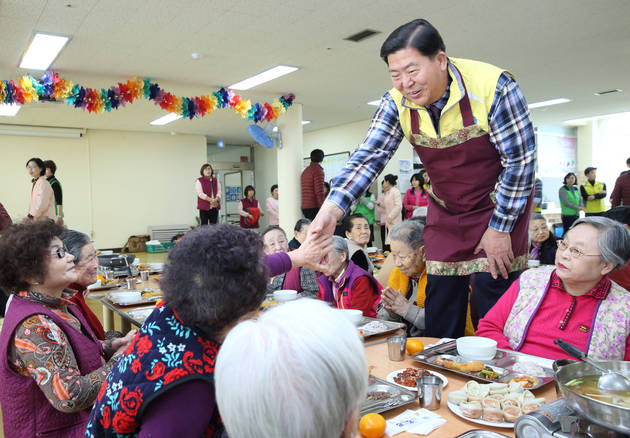[영등포신문=김경진 기자] 조길형 구청장이 3일 시립엘림노인전문요양원에서 배식 봉사를 하고 있다. 이 날 조길형 구청장을 비롯해 구청 직원 봉사단인 목련회 회원들은 설을 맞아 요양원에서 어르신들의 식사를 돕고 위문품도 전달하며 봉사활동을 진행했다.