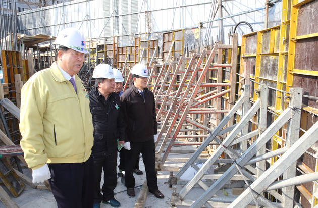 [영등포신문=이승일 기자] 조길형 구청장(왼쪽)이 설 연휴가 끝난 첫 날인 11일 오전 경부 제3녹지 지하공영주차장 건설공사 현장을 방문해 공사 관계자들과 함께 안전점검을 하고 있다.