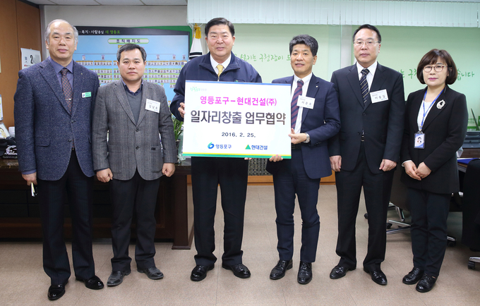 [영등포신문=김경진 기자] 조길형 영등포구청장은 25일 오전 10시 30분 구청잘실에서 현대건설(주)와 서부간선지하도로 건설 인력 일자리 창출 협약식을 가졌다. 조 구청장은 “서부간선도로 민간투자사업건설공사 시행 기관과 지역주민 우선채용을 위한 일자리 창출 업무협약을 체결해 구민의 고용률을 높이고 지역경제 활성화에도 기여할 수 있을 것으로 기대한다.”며 “앞으로도 더 많은 일자리 창출을 위해 다양한 지원 사업을 발굴하겠다.”고 말했다.