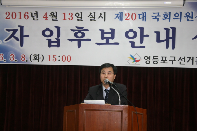 [영등포신문=이승일 기자] 영등포구선거관리위원회는 8일 오후3시 선관위 4층 대회의실에서 오는 4.13총선과 관련한 입후보안내 설명회를 개최했다.