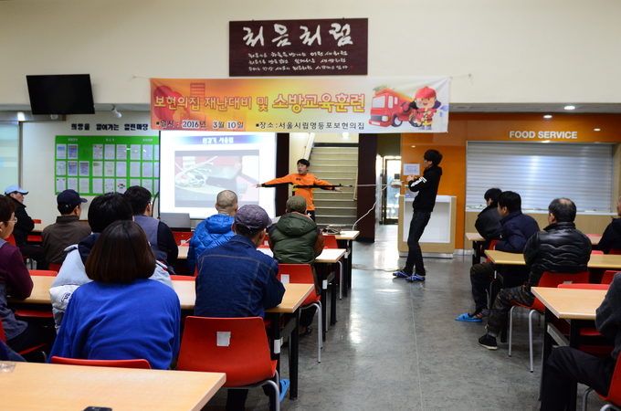 [영등포신문=육재윤 기자] 영등포소방서(서장 이귀홍)는 10일 오후 영등포동2가에 위치한 보현의 집에서 봄철을 맞이하여 화재예방과 건물 내에서 화재발생시 대처방법에 대해 교육을 실시하고 소화기 사용법, 완강기 이용한 비상탈출 방법, 생명을 살리는 4분의 기적 심폐소생술 등 체험중심의 소방안전교육을 실시했다.