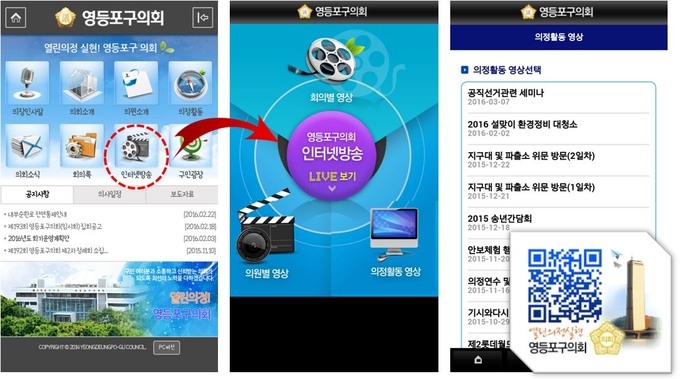스마트폰 어플리케이션 ‘영등포구의회’를 통해 회기 중 회의 전 과정을 실시간으로 시청이 가능하며, 회의별, 의원별 회의 영상과 의정활동 영상도 확인할 수 있다.