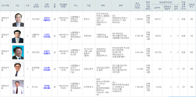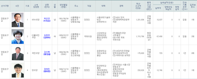 4.13총선 영등포갑.을지역 후보자 등록 현황