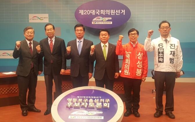 [영등포신문=이승일 기자] 오는 4월 13일 실시하는 제20대 국회의원 선거에 출마하는 영등포 갑·을 지역 후보자 합동토론회가 영등포구선거관리위원회 남기주 위원장(서울남부지방법원 부장판사)과 김용숙 선거방송토론위원(영등포신문 발행인) 등이 참석한 가운데 5일 지역 케이블 방송인 CMB방송 스튜디오에서 영등포구선거방송토론위원회 주관으로 개최됐다.