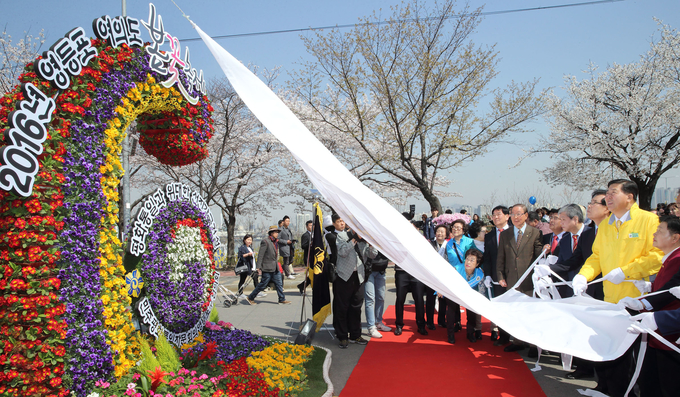 [영등포신문=김경진 기자] 민주평화통일자문회의 영등포구협의회는 여의도 봄꽃축제 기간인 5일 오전 11시 여의서로(윤중로) 서강대교 남단 봄꽃축제장 입구에서 평화통일 공감대 확산 및 민주평통 홍보를 목표로 ‘2016 평화통일염원 리본달기 및 통일기원 꽃탑 전시’행사를 가졌다.