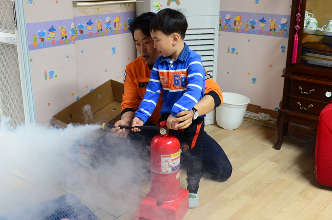 이날 원아들은 안전한 불 사용법과 전기사용법, 화재발생시 119신고요령, 소화기 사용법과 소화기 체험, 화재발생시 대피요령과 연기 대피체험 등 소방안전체험이 진행됐다.