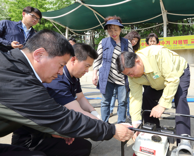 [영등포신문=이승일 기자] 영등포구는 28일 오후 대림동에 위치한 대림3동빗물펌프장에서 양수기 사용 교육을 진행했다. 집중호우시 침수 피해를 효과적으로 예방할 수 있도록 동 주민센터 수방담당자, 재난안전대책 담당자, 지역주민 등을 대상으로 엔진양수기와 수중펌프 사용법, 관리방법 등을 안내했다.