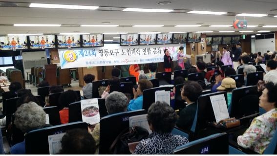 [영등포신문=김경진 기자] 영등포구에서 활동중인 27개 노인교실(대학) 500여명이 평소 갈고 닦은 기량을 발표하는 '제24회 영등포구 노인대학 연합문화예술제'가 한국마사회 영등포문화공감센터(센터장 이용선)에서 5월 12일 개최됐다.