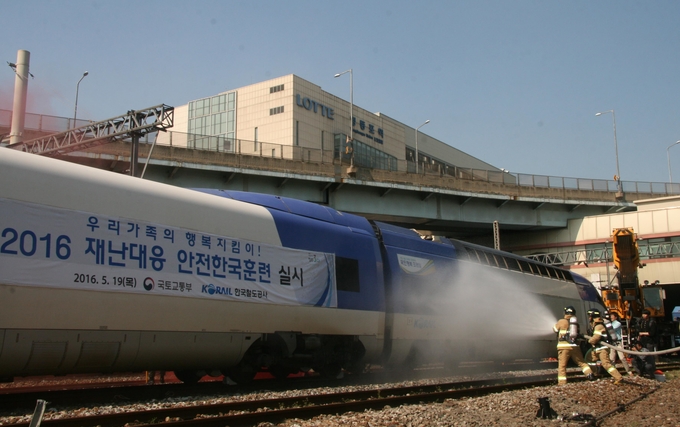 이번 합동훈련은 서울역에서 부산으로 가던 고속열차가 영등포역에서 선로전환기 오작동으로 탈선해 인명·시설물 피해가 발생한 상황을 가정해 진행됐다.