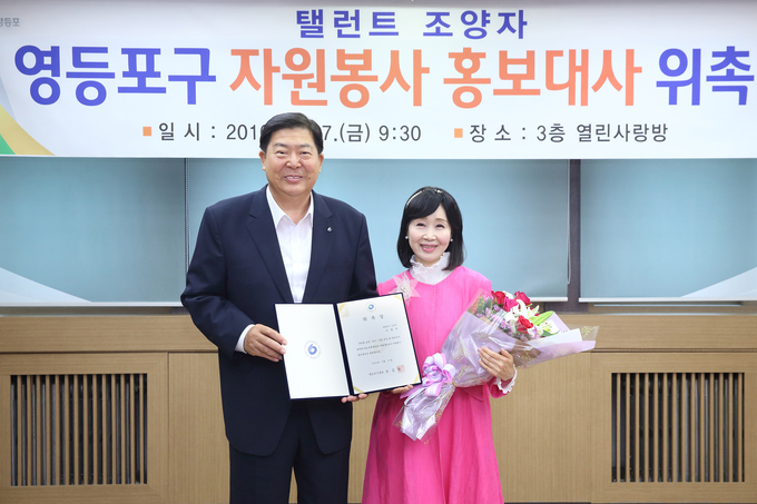 [영등포신문=김경진 기자] 영등포구는 27일 연기자 조양자를 자원봉사 홍보대사로 위촉했다.
