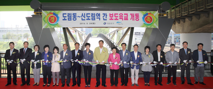 [영등포신문=김경진 기자] 영등포구가 지난 28일 신도림역과 도림동을 잇는 도림천 횡단 연결로(보도육교) 개통식에 조길형 구청장과 박정자 구의회 의장, 김영주 국회의원, 서울시의회 최웅식(운영위원장)·김정태 의원 등이 참석한 가운데 개최됐다.