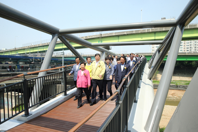 서울시로부터 30억원의 예산을 지원 받아 추진해 온 이 육교는 폭 2.5m, 길이 114m 규모로 도보 공간과 자전거도로가 함께 조성됐다.