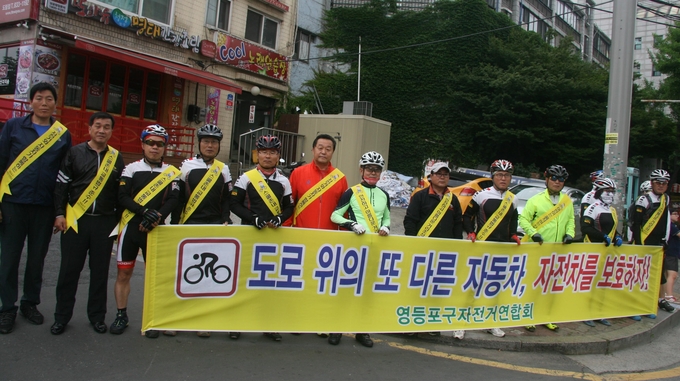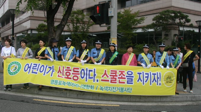 [영등포신문=김경진 기자] 국민생활체육 영등포구자전거연합회와 영등포구육상연합회, 영등포구녹색어머니연합회, 영등포구녹색자전거봉사단 회원 60여명은 6월 7일 오전 8시부터 신길동 우신초교 사거리에서 ‘도로위의 자전거보호’ 및 ‘어린이가 신호등, 스쿨존을 지키자’라는 구호가 새겨진 현수막을 내걸고 가두 캠페인을 벌였다.
