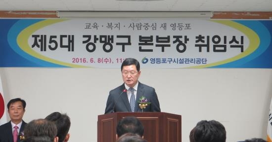 임기 3년의 영등포구시설관리공단 제5대 본부장으로 취임한 신임 강맹구(60세) 본부장은 덕수상고와 단국대 회계학과를 졸업하고 하나은행 지점장, 하나CBP 소사장, 미래신용정보 지점장, 동원메이드건설 이사 등을 역임했다.
