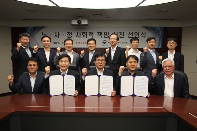 공동선언에서 롯데푸드 노사는 노사 상생협력, 일과 가정이 양립하는 직장 만들기, 고용안정과 청년실업 해결, 원하청 동반성장, 대․중소기업, 정규직과 비정규직의 임금 격차 해소 등 노사의 사회적 책임실천을 결의했다. 고용노동부 서울남부지청장은 롯데푸드 노사가 사회적 책임을 실천할 수 있도록 자문과 지원을 아끼지 않기로 했다.