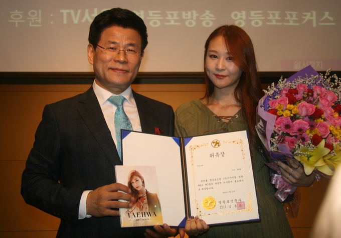 [영등포신문=김경진 기자] ‘딩동댕 정답입니다’, ‘엑스같은 사랑’으로 큰 인기를 얻고 있는 미녀 영 트로트가수 태화가 13일 서울 그랜드컨벤션센터에서 개최된 영등포신문 창간 제21주년 기념식에서 홍보대사로 위촉됐다.