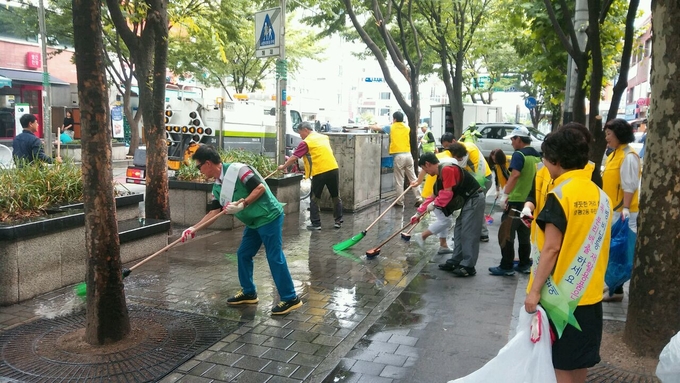 지역주민 50명, 환경미화원, 공공근로자, 인근 점포 상인 등이 참여해 가로화단 청소, 불법전단지 제거, 무단투기 쓰레기 수거, 시설물 물청소 등을 대대적으로 실시했다.
