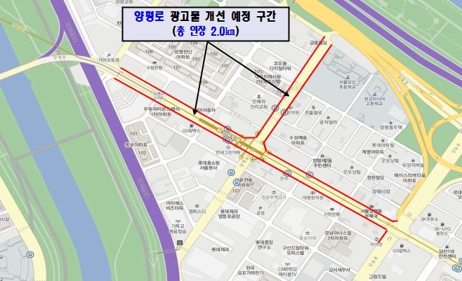 [영등포신문=이승일 기자] 영등포구는 올해 말까지 양평로 양평사거리에서 양평교입구 구간의 176개 업소에 대해 에너지절약형 LED간판 교체사업을 추진한다고 밝혔다.