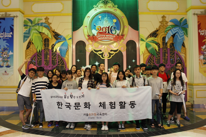 잠실 테마파크에서 중도입국청소년 17명, 한국대학생 9명이 함께 한국의 전통과 놀이를 체험하는 시간을 가졌다. 한국 대학생들은 중도입국청소년들에게 한국의 민속과 놀이 문화를 설명하며 함께 놀이 기구를 타고 퍼레이드를 관람하는 등 즐거운 시간을 가졌다.