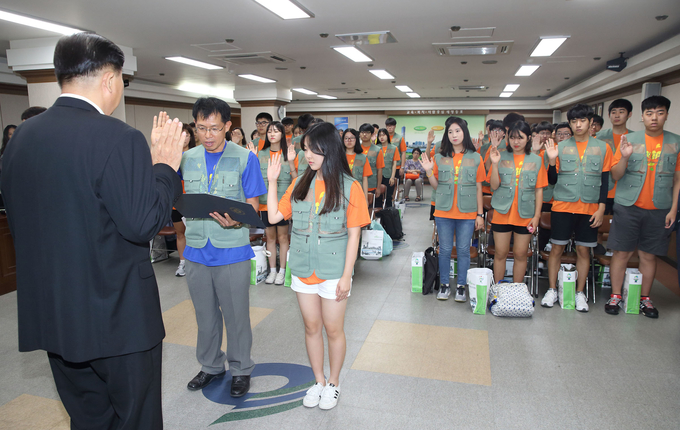 봉사활동에 앞서 지난 20일 구청 기획상황실에서 발대식을 갖고 현장업무, 안전수칙, 현지활동 주의사항에 대해 사전교육을 실시했다.