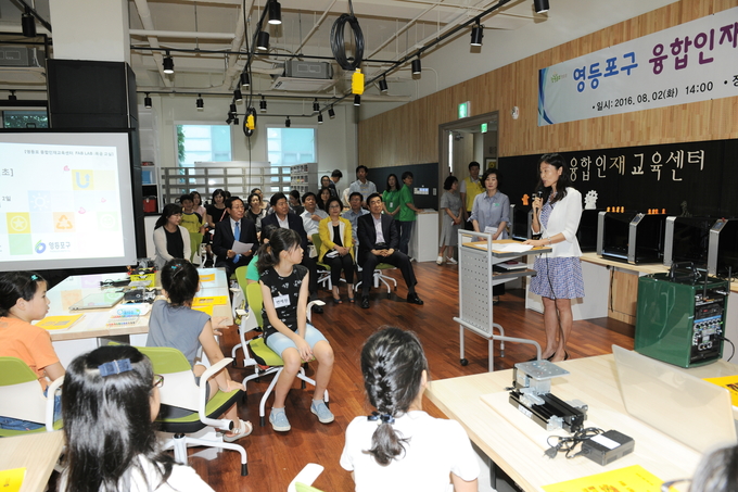 [영등포신문=김정남 기자] 융합인재교육센터는 2일 영등포구청 별관 청사 옆 자기주도학습지원센터 2층에서 조길형 구청장, 이용주 구의회 의장, 마숙란·유승용 구의원 및 학부모, 학생 200여 명이 참석한 가운데 개관식을 가졌다.