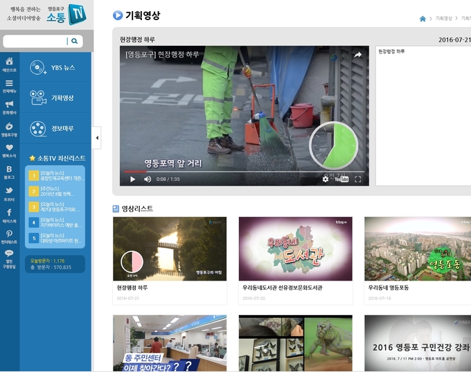 영등포구 소셜미디어방송인 소통TV(tv.ydp.go.kr)는 SNS와 인터넷방송을 결합한 소셜방송으로 구정소식, 문화행사, 건강강좌, 의회소식 등을 실시간으로 전달하며, 동시에 SNS를 통해 구민들의 의견을 반영해 양방향 소통의 장으로 자리잡았다는 평이다.