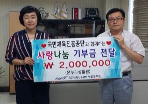 [영등포신문=김경진 기자] 국민체육진흥공단 영등포지점(지점장 김용석)은 10일 구립 영등포노인종합복지관을 찾아 무더위에 경제적으로 어려움을 겪고 있는 어르신들에게 써달라며 200만원의 ‘사랑나눔 기부금’을 전달 했다.
