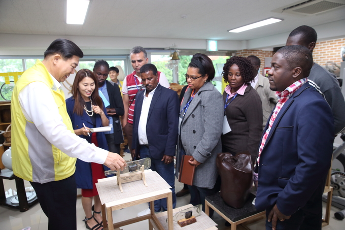 [영등포신문=육재윤 기자] 영등포구가 31일 오후 벤치마킹을 위해 자원순환센터에 방문한 몽골, 세네갈 등 13개국 환경공무원 22명을 대상으로 설명하고 있다. 이날 조길형 구청장은 직접 안내를 하며 자원순환센터의 현황과 재활용 사업에 대해 설명했다.