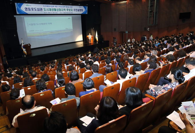 [영등포신문=육재윤 기자] 영등포구는 1일 영등포아트홀에서 조길형 구청장을 비롯해 이용주 구의회 의장, 최웅식·김정태·김춘수·유광상 서울시의원, 구의회 정영출·권영식·강복희·박정자·마숙란·박미영·박유규·허홍석 의원 등 지역주민 400여명이 참석한 가운데 영등포 도심권 도시재생에 대한 주민의 이해와 공감대 형성을 위해 마련한 주민설명회를 개최했다.