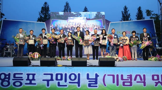 ‘구민의 날’ 행사의 하이라이트인 자랑스런 영등포구민상 시상식에서는 사회질서 확립상(조용준), 장한 어버이상(정명화), 효행상(권영임), 봉사상(박균영), 모범청소년상(박성아), 체육상(박종명), 교육상(박옥희), 과학상(이기영), 환경상(박문순), 그리고 단체부문에 대림2동 자율방범대(사회질서확립상), 남서울교회(봉사상), 당산2동체육회(체육상), 선유중학교(환경상)에수상의 영광이 돌아갔다.