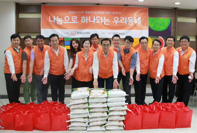 한화63시티는 2004년 12월부터 현재까지 영등포노인종합복지관과 지속적인 사회공헌활동을 진행했으며, 2016년도에는 영등포구 당산1동과 연계해 당산1동 취약계층 어르신들과 지역사회가 하나 되기 위한 다양한 활동을 진행하고 있다.