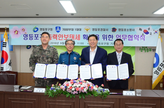 [영등포신문=이승일 기자] 영등포소방서(서장 이귀홍)는 27일 오전 영등포구청 3층 기획 상황실에서 영등포구청, 영등포경찰서, 8688부대와 업무협약(MOU)을 체결했다고 밝혔다.
