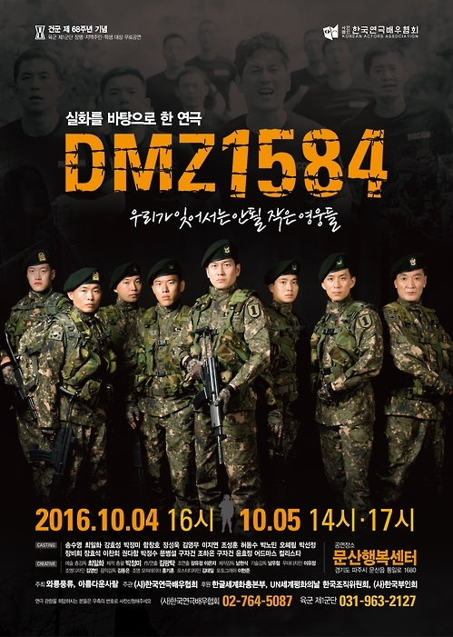 29일 육군 1군단에 따르면 사단법인 한국연극배우협회(회장 최일화)는 다음 달 4∼5일 경기도 파주시 문산 행복센터 대공연장에서 연극 'DMZ 1584'를 공연한다.
