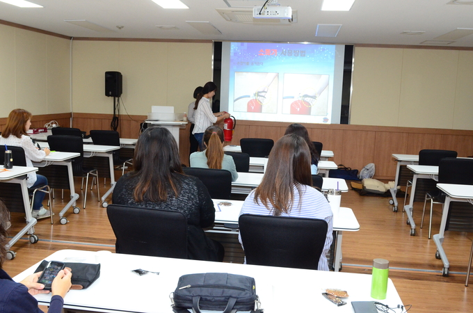오늘 교육은 화재 등 재난 발생시 대처능력을 향상시키고 안전의식을 고취하기 위한 목적으로 소방안전교육이 진행됐으며, 소화전사용요령 및 심폐소생술 등에 대한 교육을 진행했다.
