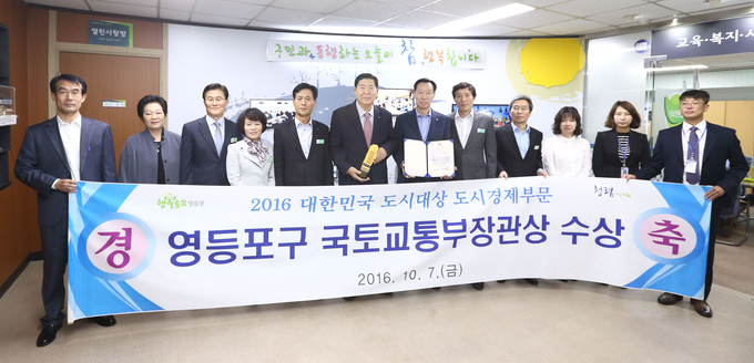 영등포구가 7일 순천만 국가정원에서 열린 도시의 날 기념 시상식에서 ‘2016년 대한민국 도시대상’ 도시경제부문 국토교통부장관상을 수상했다고 밝혔다.