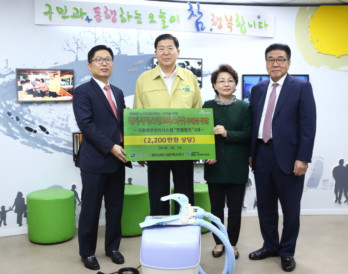 [영등포신문=김경진 기자] 래더서비스네트웍스(대표 최영갑)는 13일 구청에서 조길형 구청장(왼쪽 두번째)에게 후원품 ‘노인 전용 자동배변처리기’ 5대(2,200만원 상당)를 전달했다.