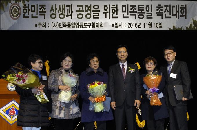 [영등포신문=김경진 기자] 민족통일영등포구협의회(회장 이현문)는 지난 10일 영등포아트홀 대강당에서 조길형 구청장과 이용주 구의회 의장, 신경민 국회의원, 김한중 국민의당 영등포갑 지역위원장, 고기판 구의회 부의장, 황태연 영등포구재향군인회장, 유태전 인봉의료재단 회장(민통 지도위원장) 등 지역인사와 회원 및 주민 500여 명이 참석한 가운데 '한민족 상생과 공영을 위한 민족통일 촉구대회'를 개최했다.