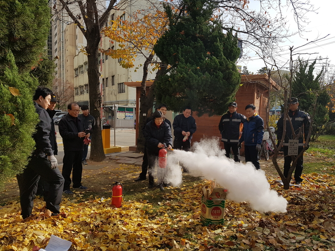 이날 훈련은 화재발생시 초기대응의 중요성과 건물 내에서 화재발생시 대피훈련 소화기 및 옥내소화전 사용법, 소화전 및 비상화장치함을 점유해 화재진압 훈련, 재난 발생시 건물 내 인명대피 및 인명구조 훈련을 실시했다.