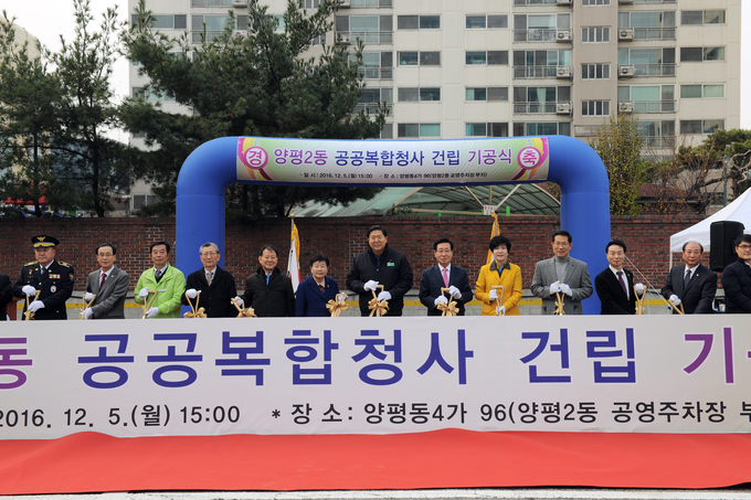 양평2동 공공복합청사는 동주민센터를 비롯한 어린이집, 작은도서관, 다목적강당, 공영주차장 등 다양한 기능을 갖추어 2018년 11월 준공될 예정이다.