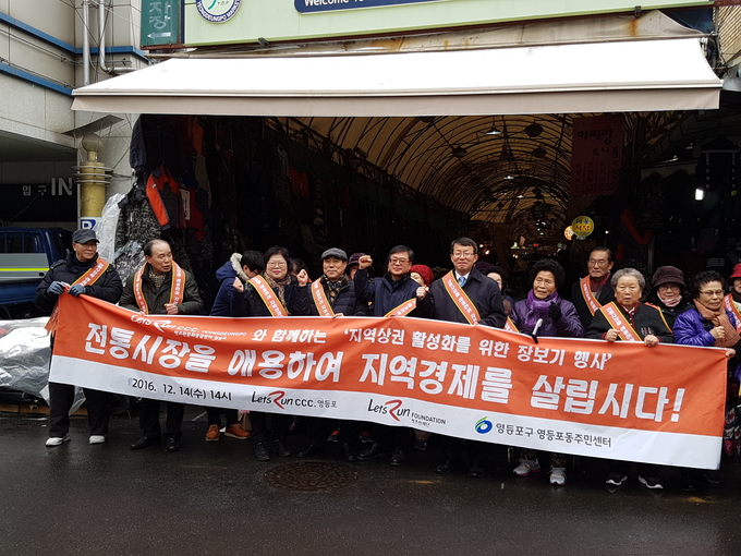 [영등포신문=이승일 기자] 한국마사회 영등포문화공감센터(센터장 이용선)는 14일 연말을 맞아 영등포전통시장상인회 및 영등포동주민센터와 협력해 지역내 저소득층을 지원하고 전통시장을 활성화 하기 위해 '렛츠런 지역상권 활성화' 행사를 가졌다.