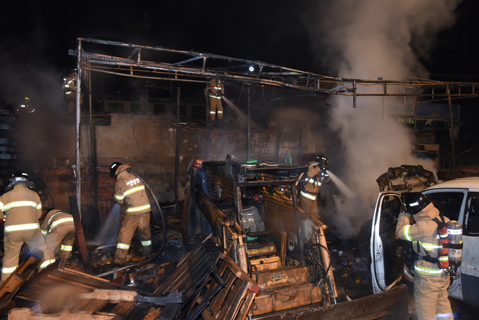 [영등포신문=김경진 기자] 영등포소방서(서장 이귀홍)는 17일 새벽 1시 18분경 문래북로 소재 청소업체 차고지 가건물에서 원인미상의 화재가 발생해 차량1대 및 집기류 등을 태우고, 천 8백 만원의 재산피해를 냈다.