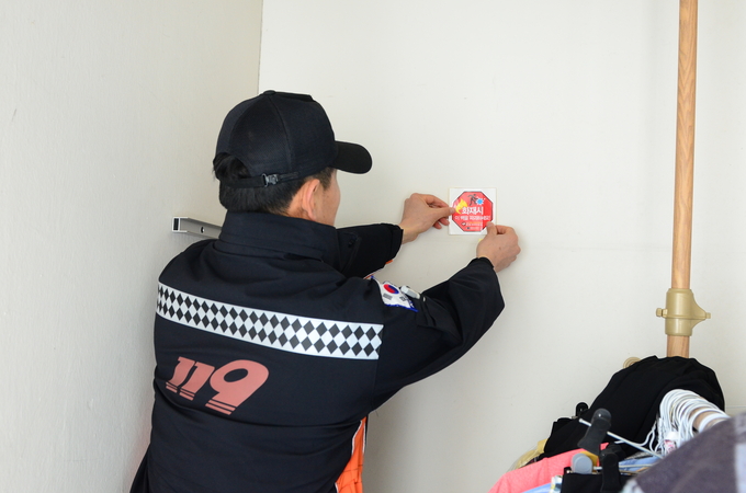 1일 소방공무원들이 영등포구 대림동 소재 경남아너스빌 등 공동주택 주민들에게 경량칸막이에 대해 설명하고, 수납장이나 적치물로 막아놓지 않도록 안내하고 있다. 공동주택 경량칸막이는 9mm 가량의 석고보드로 만들어져 화재시 쉽게 부서져 탈출이 가능하도록 만들어졌다.