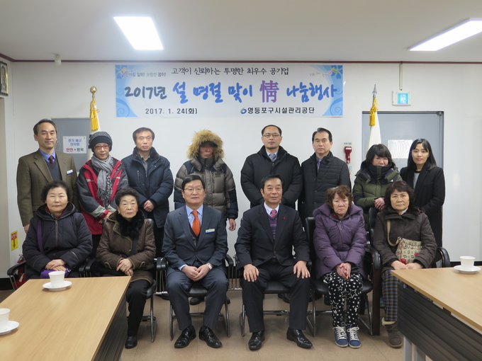 [영등포신문=이승일 기자] 영등포구시설관리공단(이사장 고현순)은 지난 1월 24일 관내 주민과 함께하는 2017년 설맞이 정(情) 나눔 성금전달 행사를 실시했다.