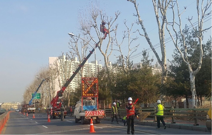 가로수는 도심 속 아름다운 경관을 선사하는 요소이기도 하지만 생장으로 인해 건물이나 전선 등에 피해를 주기도 한다. 도심 가로수 가지치기는 수목의 생장 휴면기인 겨울철에 맞춰 진행하게 된다.