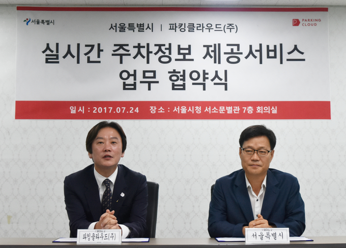 서울시는 서소문1청사 회의실에서 파킹클라우드(주)와 대시민 실시간 주차정보 제공서비스 확대를 위한 업무협약을 24일 체결했다고 밝혔다.