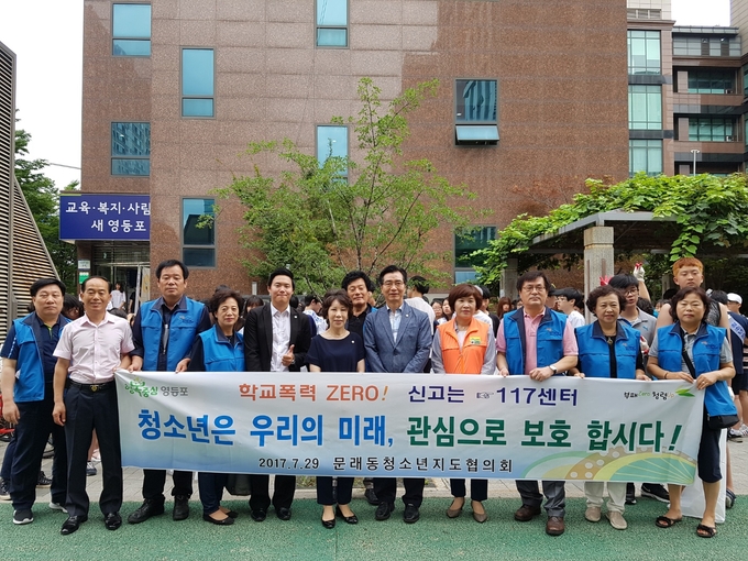 [영등포신문=최승태 기자] 영등포구의회 고기판 부의장과 강복희 의원이 29일 문래동주민센터에서 열린 청소년 자원봉사활동 현장에서 청소년들을 격려하고 학교폭력방지 캠페인에 동참했다.