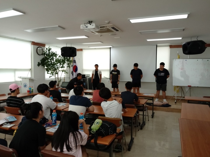 ISDSA 국제셀프디펜스안전협회에서 활동하는 배민훈, 황인우 강사가 다양한 안전교육을 실시했으며 청소년들에게 근접격투방어와 인명구조를 알려줬다.