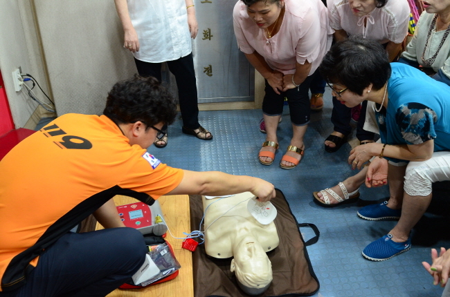 여름철 물놀이 안전사고 예방요령, 소화기 체험, 성인 심폐소생술, 화재발생시 대피 요령 순으로 진행된 이번 교육은 새로운 배움을 얻고자 하시는 어르신들에게 결코 늦지 않은 소방안전교육이었다.
