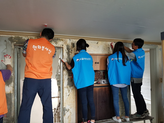 [영등포신문=배미영 객원기자] 서울지방보훈청(청장 이경근)과 (주)한화(방산부문 대표이사 이태종)는 18일 6.25 참전유공자 김운용님 댁을 방문해 도배 및 장판교체 봉사활동을 실시했다.